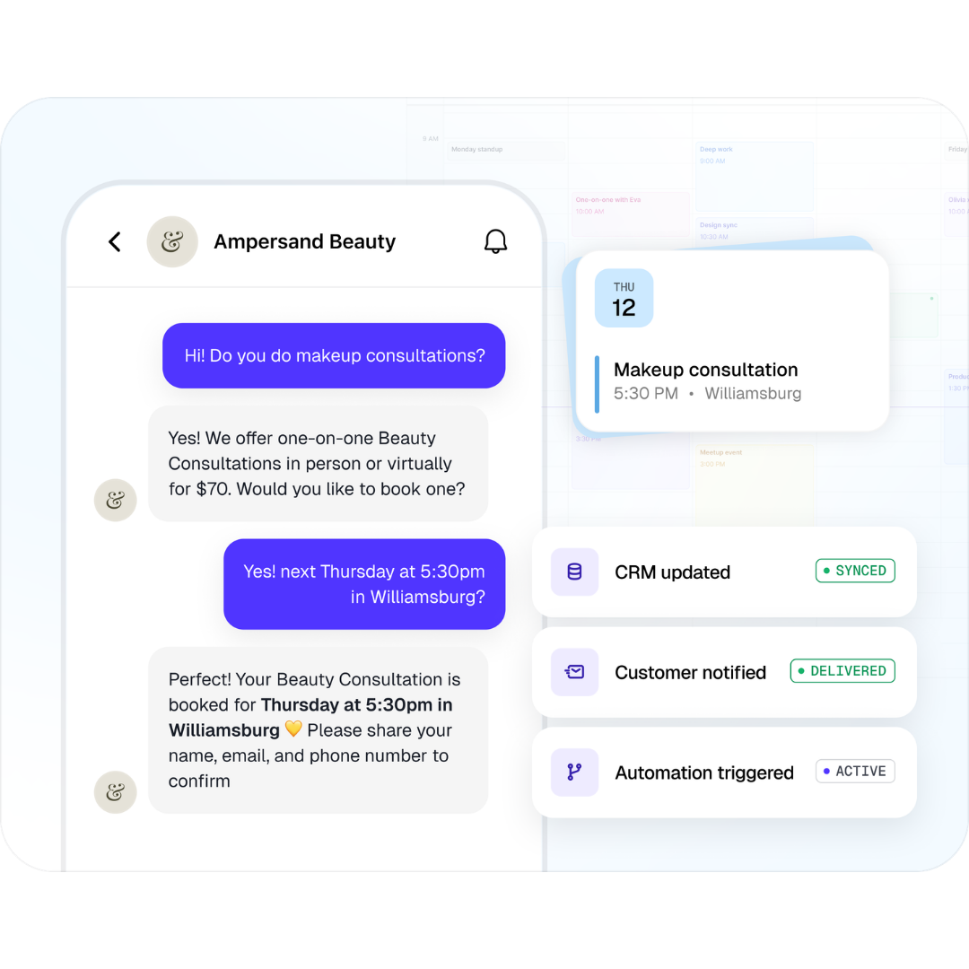 Customers rebook in a natural conversation: without searching, calling, or filling out forms.